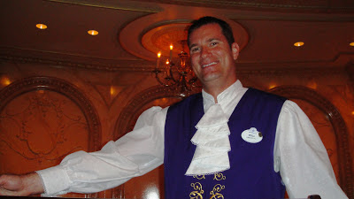 During Disney Wine & Dine Half Weekend, my husband and I were also celebrating our anniversary. We had fantasized about toasting our number 23 (along with my runDisney Coast to Coast Challenge medal!) at Be Our Guest Restaurant. Though only in soft opening, we had the amazing fortune of eating there twice during our November stay. We both remarked how happy each and every cast member working in Beast’s Castle looked; and why not? Anticipation for this eatery has been building to a crescendo since the New Fantasyland expansion was announced three years ago. After conversing with a server there (a cast member we had befriended at The Flying Fish eight years ago), he informed us that Disney selected the best of their best when staffing this establishment. (The same strategy was used when choosing the waitstaff at Carthay Circle Restaurant in Disneyland.) So, the cast members at Be Our Guest Restaurant are the creme of the Disney crop. Could I make the Disney cut? And which position would I like??