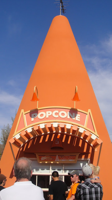 Boy, did I have a full tank!! (Luckily, I kicked up my RPM’s the next morning with a run through Downtown Disney District.) On my next trip, I’m driving for Red’s Apple Freeze, (I’ve read that it’s Disneyland’s answer to Butterbeer), and the Bacon and Cheddar Popcorn. Be sure to put the orange Cozy Cones on your map!